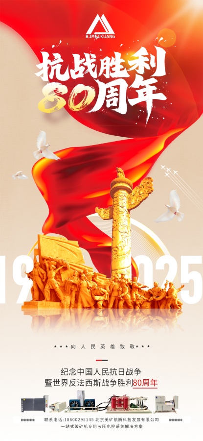八十年前,先輩浴血奮戰,換得山河無恙;八十年后,吾輩賡續精神,篤行實干報國。在紀念中國人民抗日戰爭暨世界反法西斯戰爭勝利 80 周年之際,美礦航騰以初心敬歷史,以行動踐使命。深耕礦機智能液壓系統制造領域,我們集結軟件、液壓、機械、電氣工程師核心團隊,自主研發破碎機、制砂機等礦機液壓潤滑控制系統,量身定制礦山智能解決方案,從圓錐破碎機、旋回破碎機、鄂式破碎機、反擊式破碎機、制砂機、振動設備、移動破碎站的液壓潤滑控制系統的開發應用,以及供應適用于國際品牌美卓/山特維克等系列破碎篩分設備的備品備件,美礦航騰以硬核技術服務海內外客戶,深受好評。銘記歷史不是停駐過往,而是以奮斗奔赴未來。美礦航騰將始終秉持科技創新理念,以更優質的礦機液壓產品、更專業的服務,在實業興邦路上堅定前行,為礦山行業發展、國家建設注入力量!